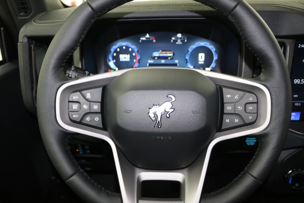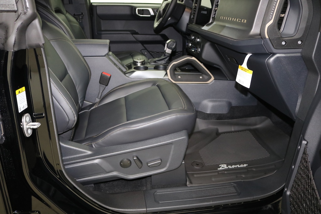 2025 Bronco Badlands 4-Door 4X4 2.7L Ecoboost Engine, 10-Speed Automatic Transmission, 334A Badlands Equipment Group, 12" Center Stack Touchscreen, Aux Switches, Cruise Control, Molle Strap System, Tilt/Telescoping Steering Wheel, LED Signature Lighting, Full Vehicle Steel Bash Plates, Digital Instrument Cluster, 4-Wheel Disc Anti-Lock Brakes, Front Stabilizer Bar Disconnect, Sirius XM, Terrain Management W/G.O.A.T. Modes, Badlands Suspension, Advanced 4X4, Dual Zone Electronic Climate Control, Adaptive Cruise control, 360-Degree Camera, Lux Package, Rock Rails, Remote Start System, Leather Trimmed Seats, Black Painted Hardtop, Black Appearance Package, 17" Black Aluminum Beadlock Wheels, Sasquatch Package, 4.17 Locking Rear Axle, Modular Front Bumper, Top/Door Storage Bags