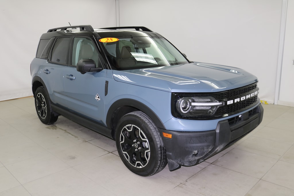 Azure Gray Metallic 2025 Ford Bronco Sport Outer Banks Bluetooth, Navigation System, Backup Camera, Sunroof/Moonroof, Leather Seats, Premium Audio Package, Non Smoker, No Accidents, 1 Owner, Apple Carplay, Android Auto. .....Nebraska's volume dealer with the home town service you expect!